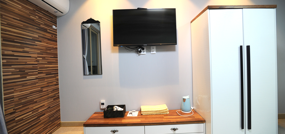 | 객 실 | 냉장고, 에어컨, TV, 침구셋트, 이불장, 와이파이, 드라이기, 고대기, 빨래건조대 |