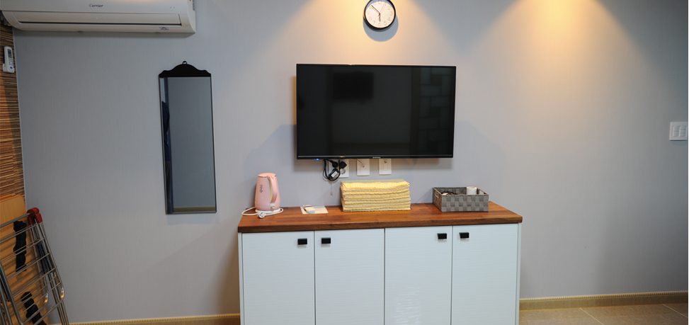 | 객 실 | 냉장고, 에어컨, TV 2대, 침구셋트, 이불장,선풍기, 공기청정기, 와이파이, 드라이기, 고대기, 빨래건조대 |