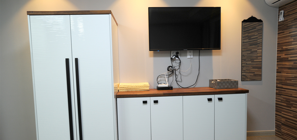 | 객 실 | 냉장고, 에어컨, TV, 침구셋트, 이불장, 와이파이, 드라이기, 고대기, 빨래건조대 |