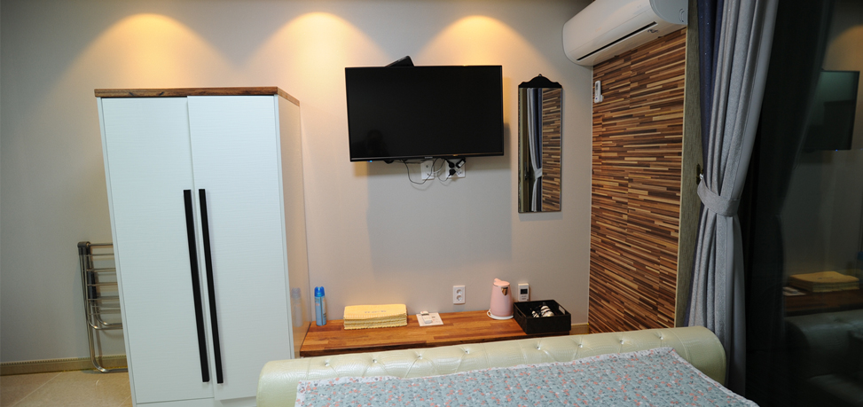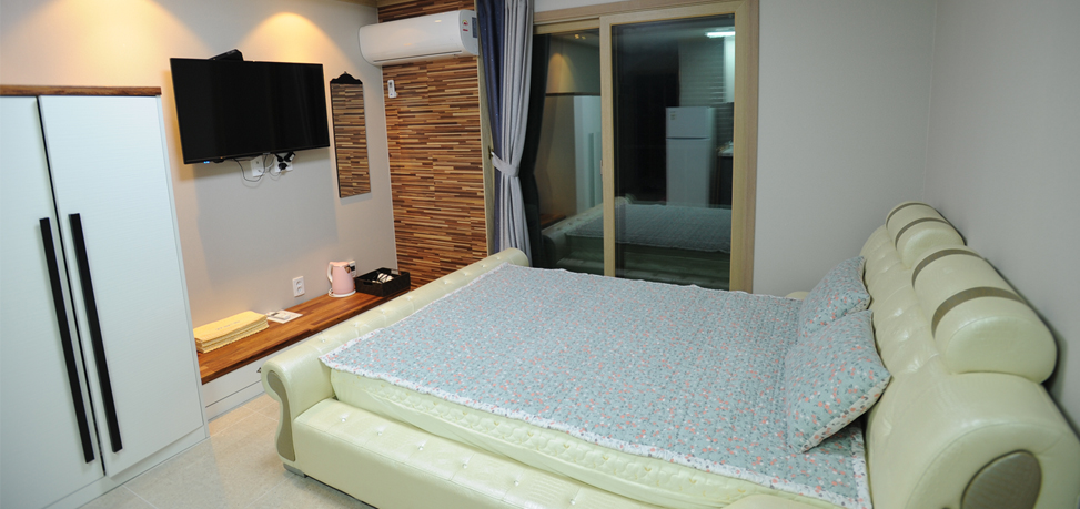 | 객 실 | 냉장고, 에어컨, TV, 침구셋트, 이불장, 와이파이, 드라이기, 고대기, 빨래건조대 |